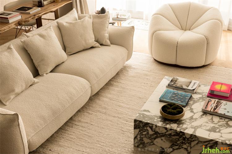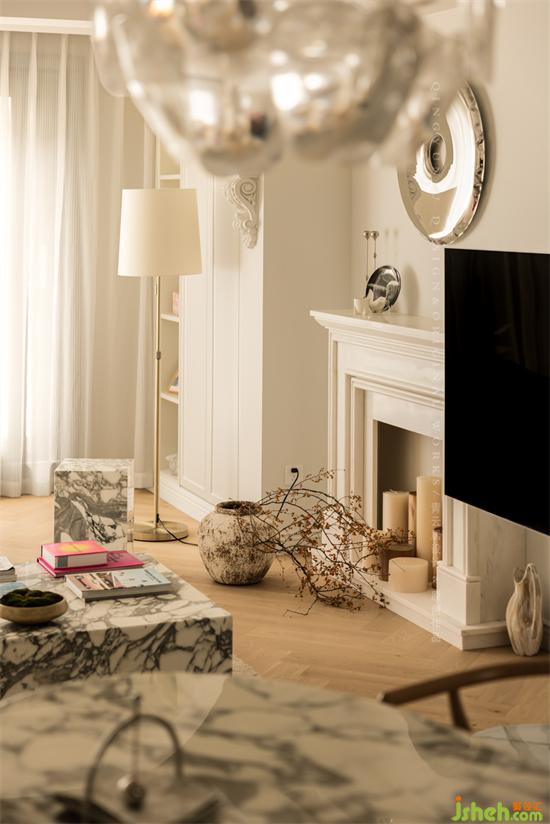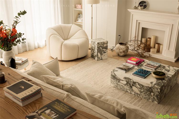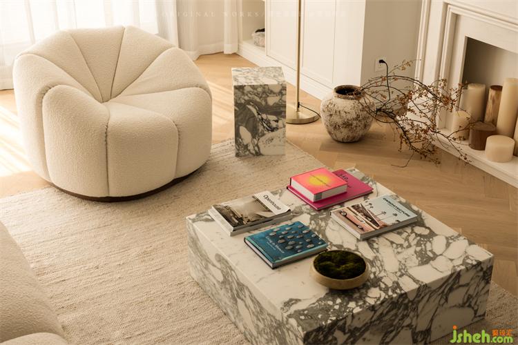 大理石茶幾,造型簡潔大氣,融入了石材的本質紋理,杭州錦麟府裝修設計搭配整體軟裝,滿滿的現(xiàn)代奢華氣質。