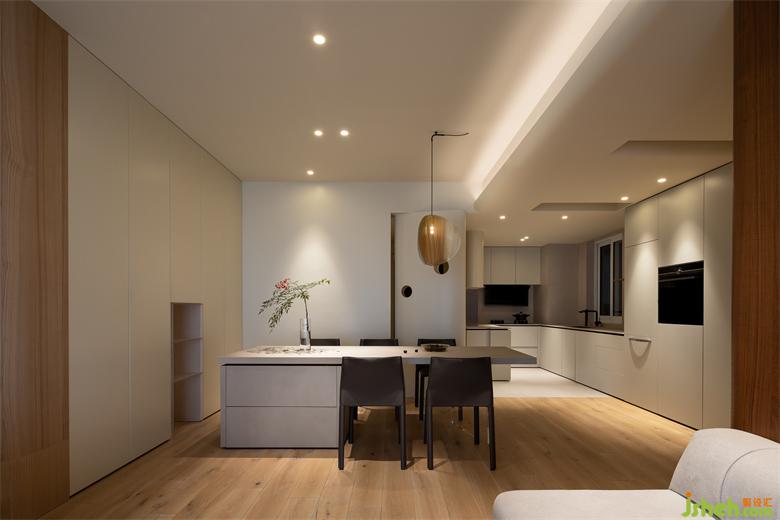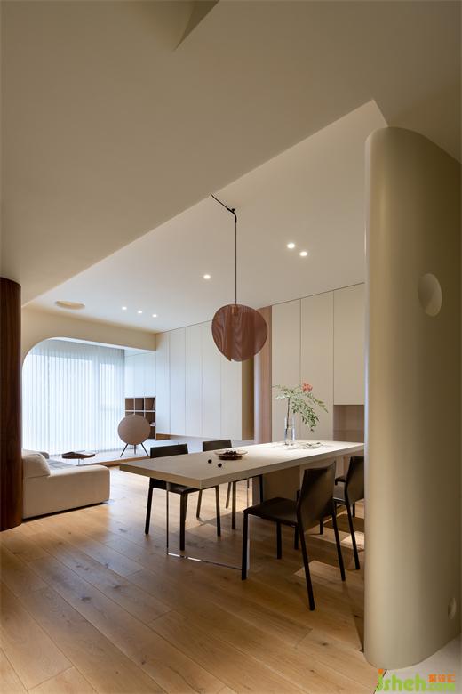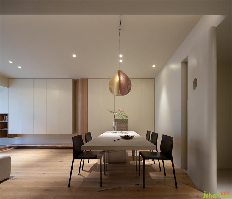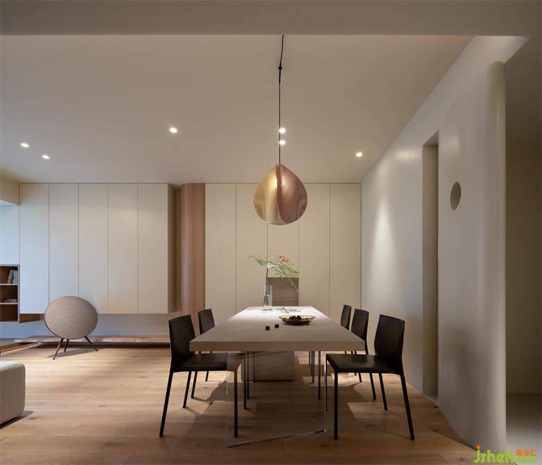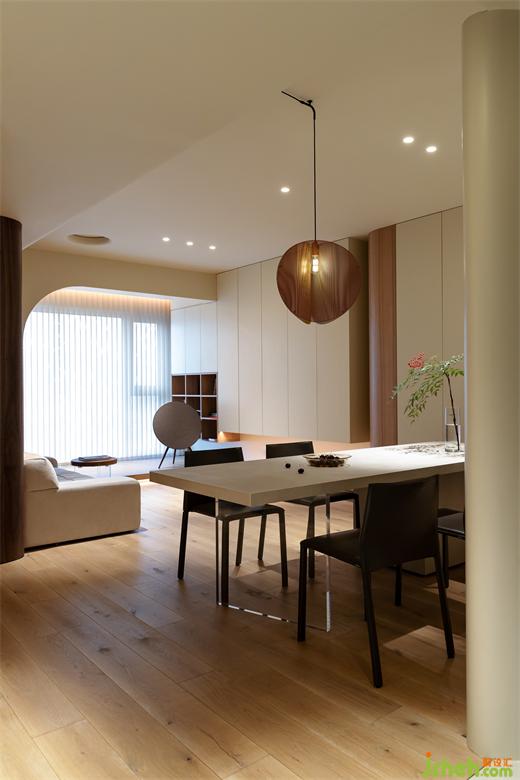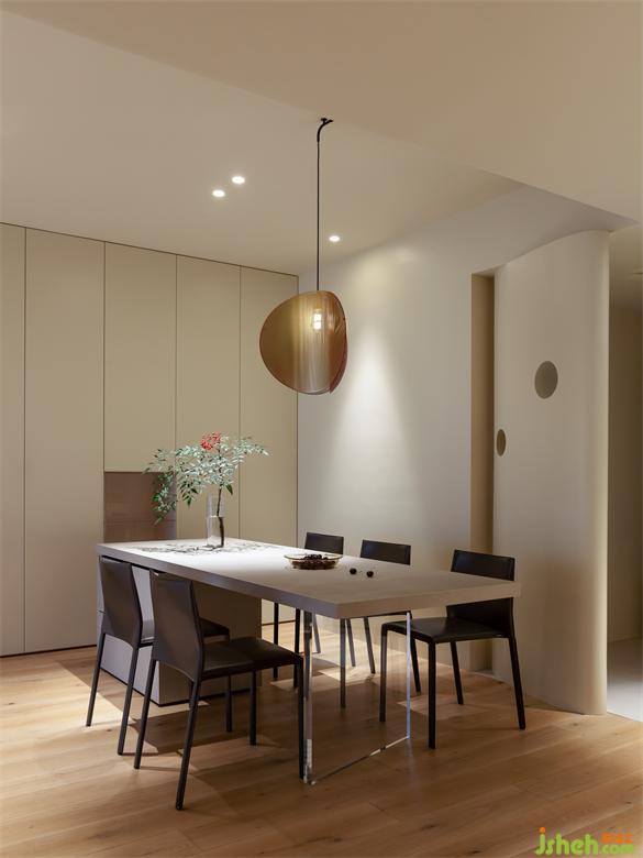 搭配簡(jiǎn)約圓形吊燈,光線柔和溫馨,放慢用餐的時(shí)間,靜享生活慢時(shí)光