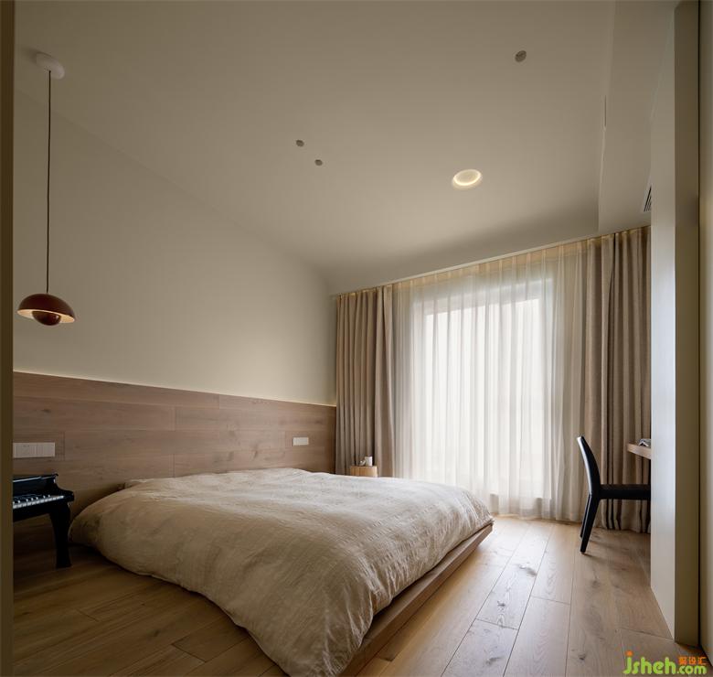 考慮到業(yè)主家的寶寶很小,需要家長(zhǎng)陪睡,所以將懸浮床依靠著墻體設(shè)計(jì),寬度適合可以放一張小床,非常人性化。