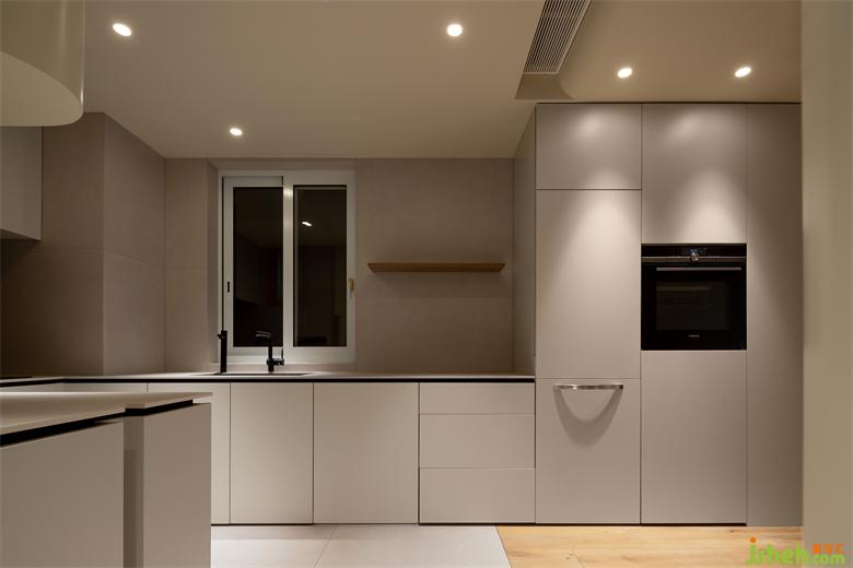 整體外觀簡(jiǎn)潔優(yōu)雅,內(nèi)置分層收納空間,杭州水岸楓庭家裝設(shè)計(jì)讓廚房物件輕松歸納。