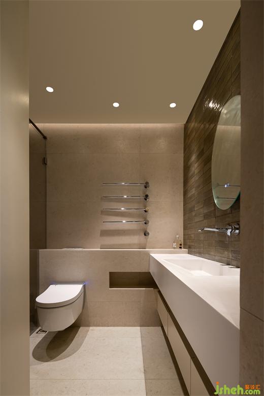 衛(wèi)生間采用大面磚,搭配簡(jiǎn)潔的衛(wèi)浴設(shè)備,以及白色、米色等中性色調(diào),使整個(gè)空間更加干凈利落。