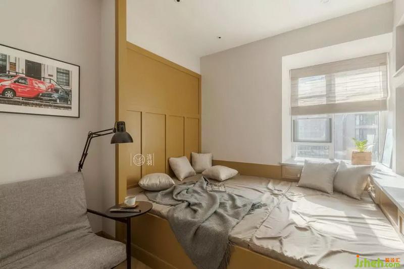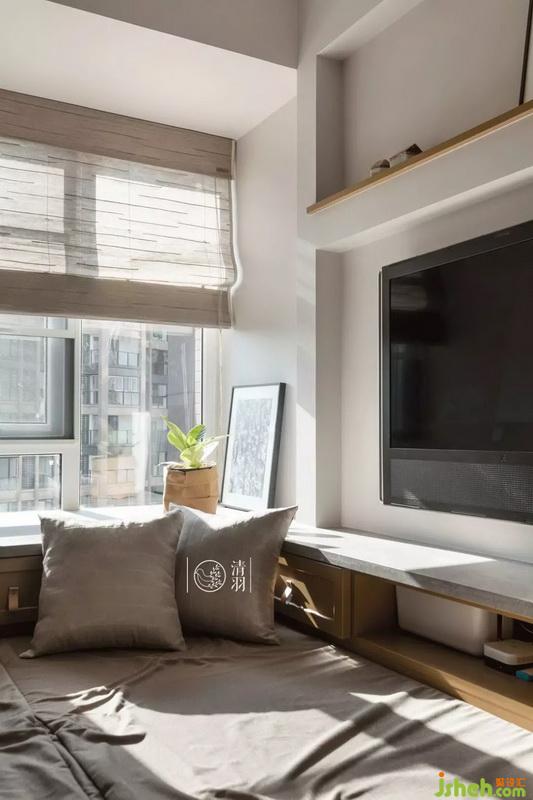 這個房間是這套房子面積最小的臥室,為了充分利用空間,并且讓房間看上去不擁擠,我們室內(nèi)設(shè)計師選擇了使用榻榻米。這里除了客房的功能,平時更是兩個寶寶玩耍的地方。