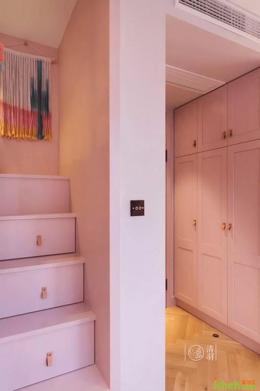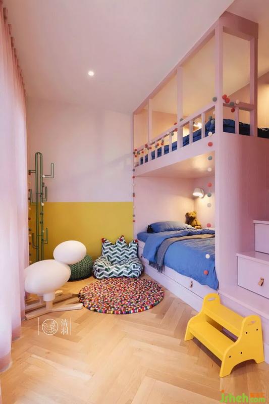 為了有更多的空間用來給兩個寶寶活動,兒童房現(xiàn)場室內(nèi)設(shè)計師制作了高低床,并整合了書柜和大容量衣柜。光線最好的區(qū)域都空著讓寶寶玩耍。等她們逐漸長大,再按需要添置家具進(jìn)去。