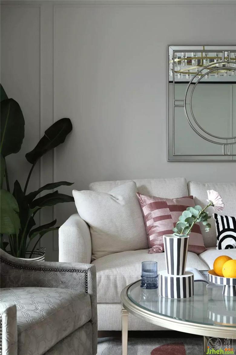 經(jīng)由我們軟裝改造后的客廳是一個(gè)充滿幾何美的小天地,優(yōu)雅素凈之中,又不失活潑生趣,壁上的圓形造型鏡與垂懸的吊燈、簡(jiǎn)約茶幾以及地毯相互呼應(yīng)著,墻面造型為空間增添了雅致感。