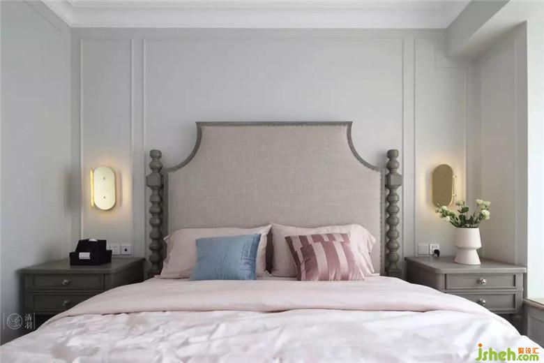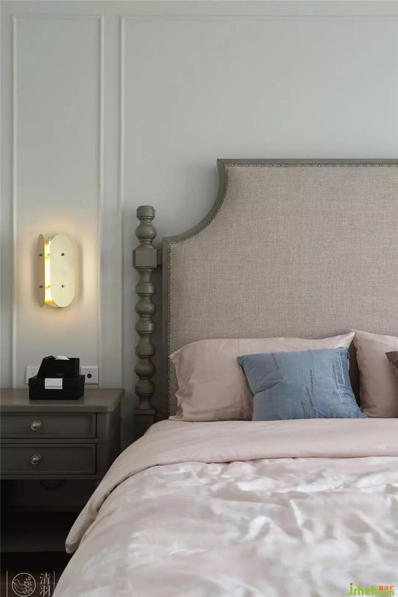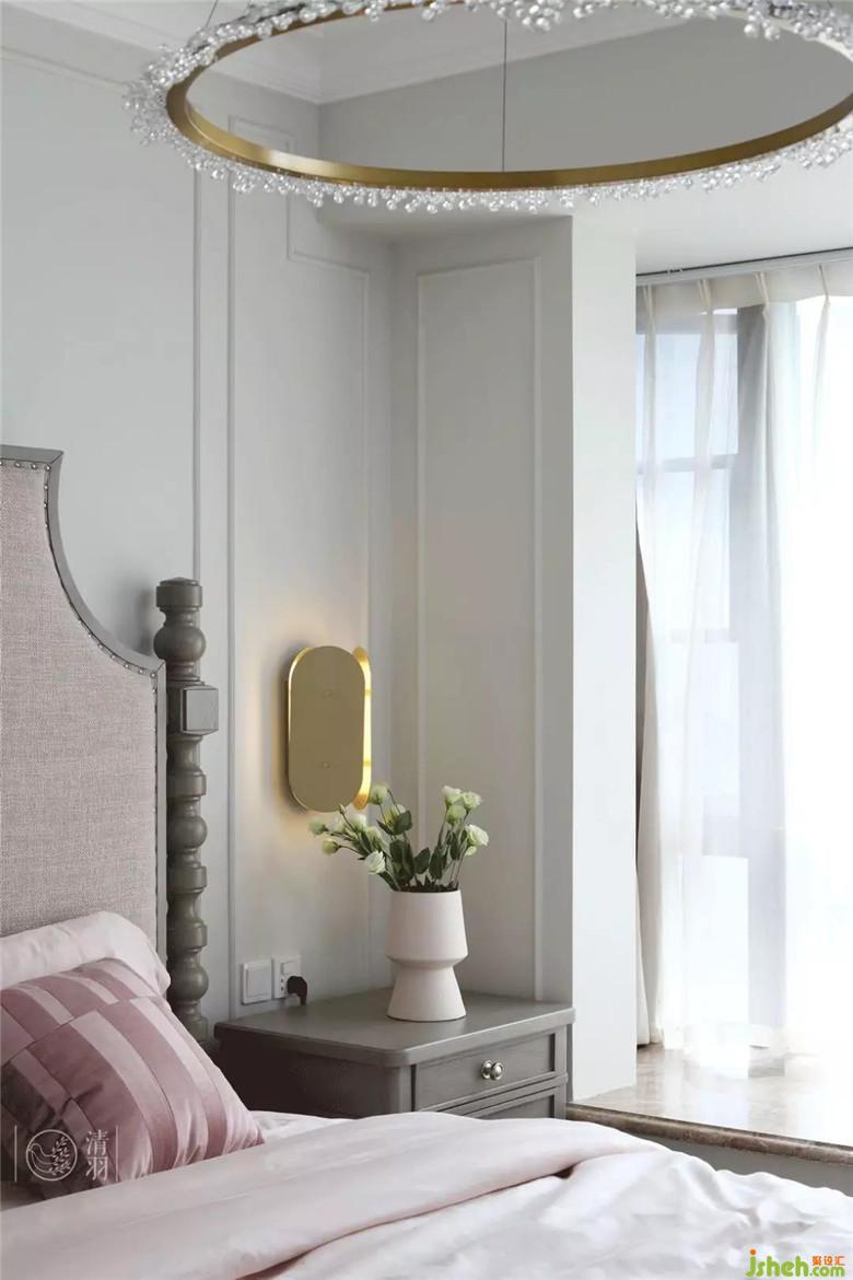 自古紅藍(lán)出cp,這里清爽的藍(lán)與粉嫩的紅呼應(yīng)了客廳的設(shè)計(jì),搭配上精美的吊燈和大氣的床頭營(yíng)造出了浪漫感和如玉一般溫和柔潤(rùn)的視覺(jué)觀感,妥妥地滿(mǎn)足女主人的少女心。