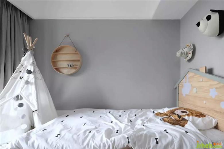 我們給小兒子打造了一個(gè)專(zhuān)屬“小屋”,床尾簡(jiǎn)美的小帳篷十分引人注目,配合壁上的小動(dòng)物和木屋”造型的床頭營(yíng)造出野外露營(yíng)的趣味。