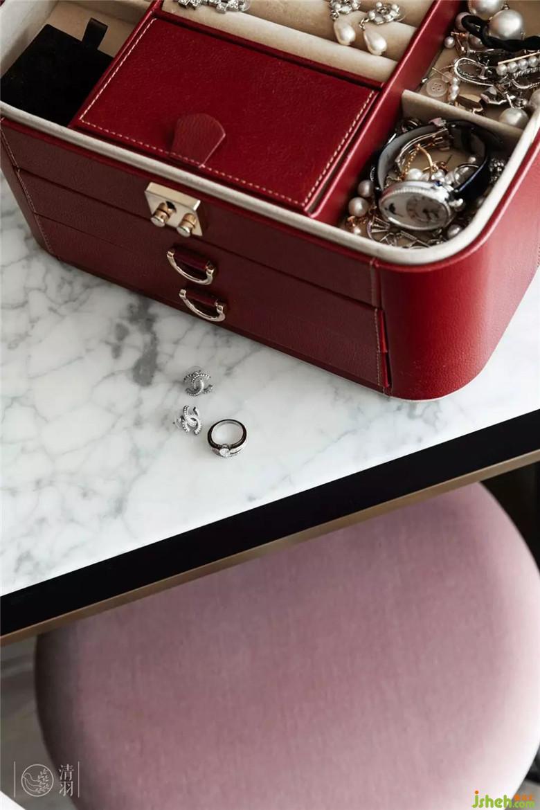 梳妝臺(tái)的各種收納也考慮到位,首飾、香水、護(hù)膚品……寵愛(ài)自己的時(shí)刻最應(yīng)該被尊重。