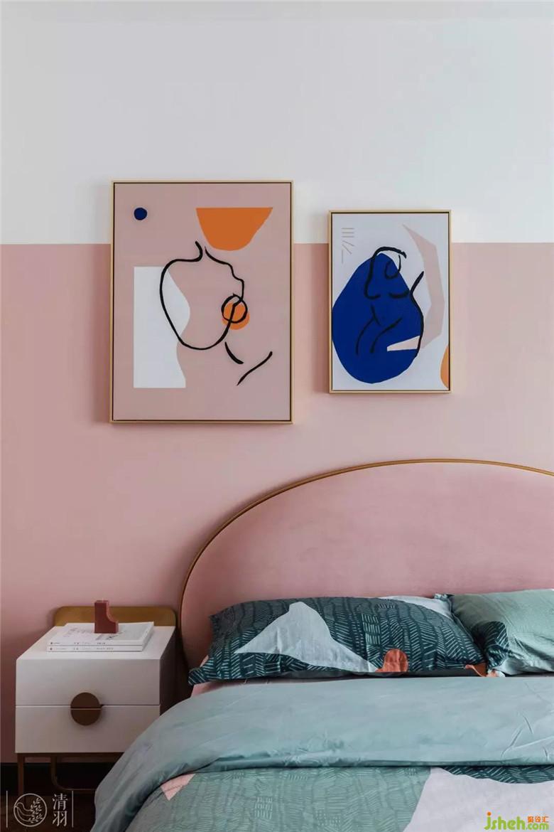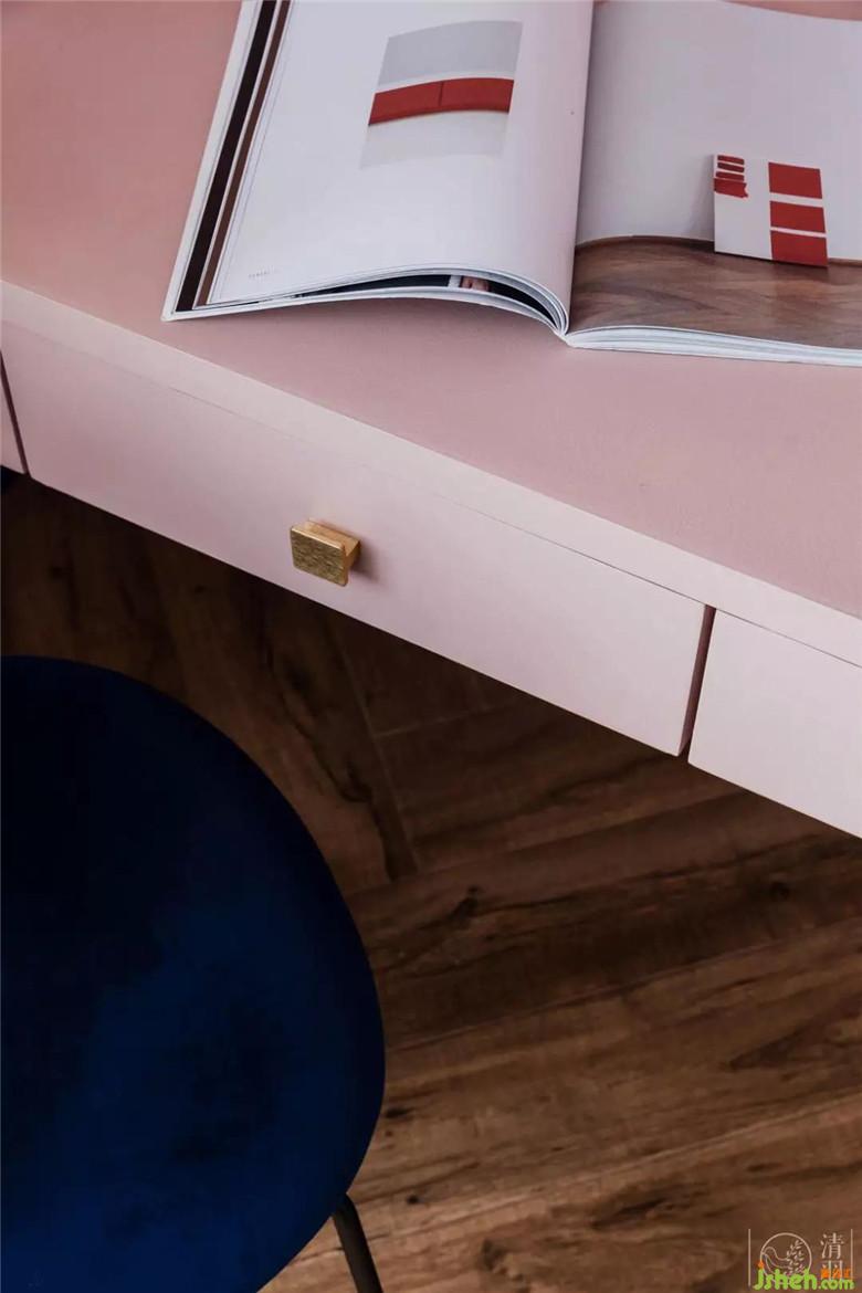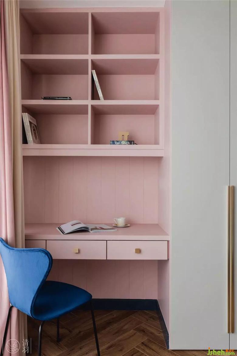 每個(gè)小女孩都喜歡粉色,女兒的房間在淺粉中調(diào)入了一點(diǎn)橙,不再是嬌柔甜膩,多了一些天真孩子氣。空間留白較多,給成長(zhǎng)更多可能。