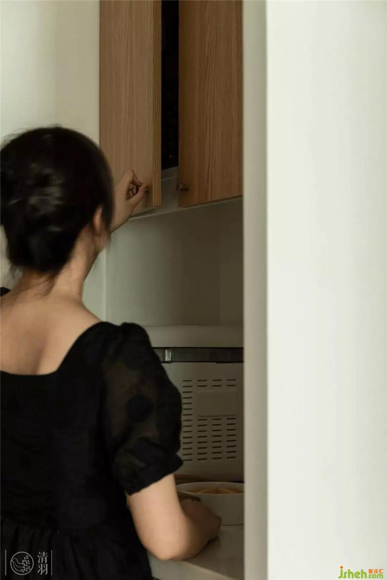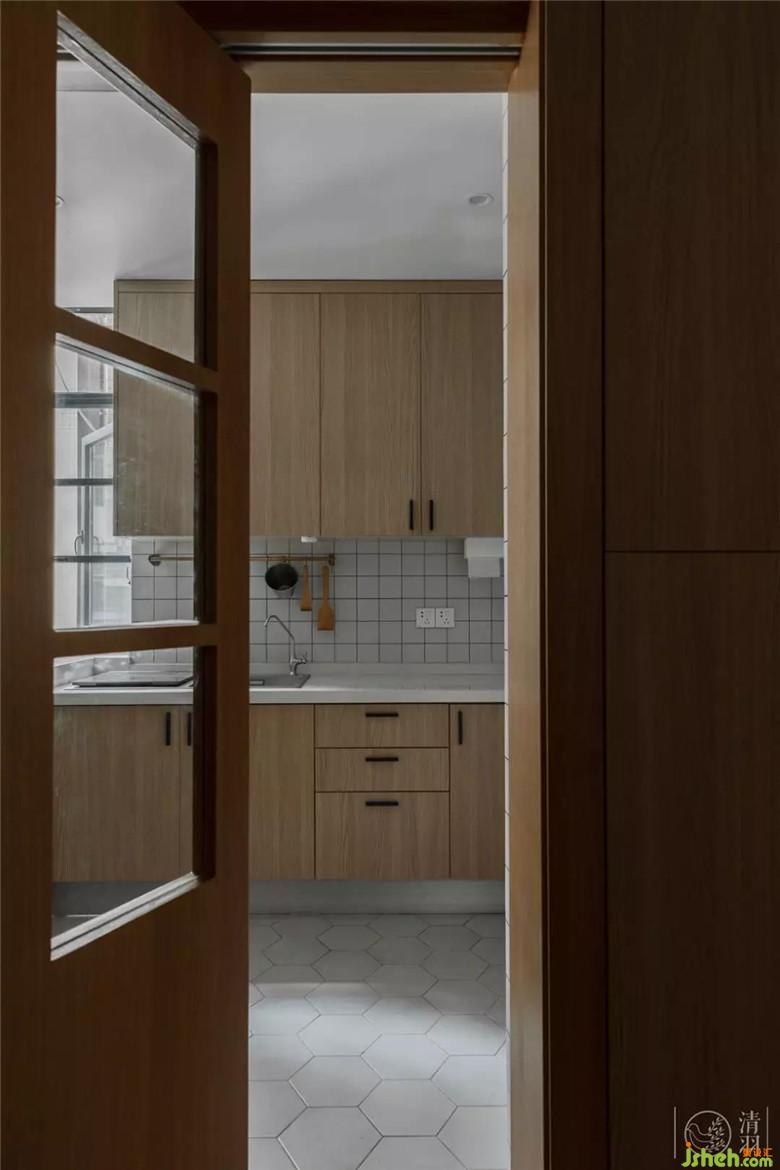 因?yàn)闃I(yè)主和她的媽媽希望家里能有個(gè)大廚房,所以經(jīng)過(guò)商量,我們決定并入原先的生活陽(yáng)臺(tái),擴(kuò)大廚房面積同時(shí)也使得采光更好。