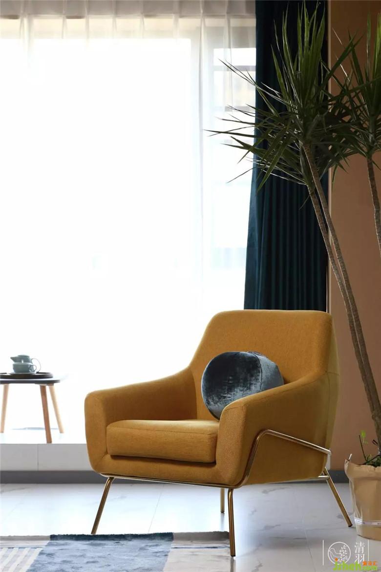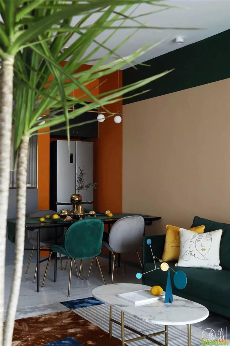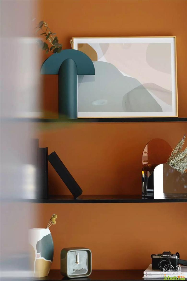 采用不同濃度的色彩和材質鋪墊,搭配充滿摩登感的擺件,組合出細膩而豐富的質感層次,尤其是瑪瑙綠糅著橘子黃形成整個空間鮮明的視覺焦點,讓夏意變得絲絲入扣,觸動人心。
