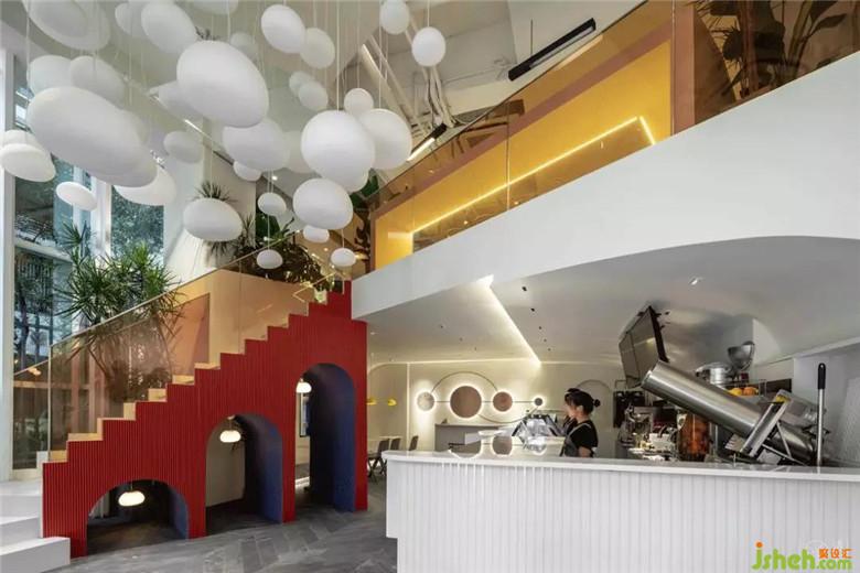 樓梯,也是加入了小心思的一處設(shè)計。家里沒有礦的我們,小時候往往都累積下了很多“小欲望”,到了一定的年紀(jì)就變成了“情節(jié)”。對于男孩子來說,擁有“車?!笔羌钊伺d奮的事兒,如果運(yùn)氣好能得到“宇宙飛船”那更是不得了的大事件??稍谶@樣一間店里放置一部車或者一個飛船都是怪異無比的設(shè)計,于是,我們決定把上下二樓的這段路制造出宇航員出入船艙的儀式感。