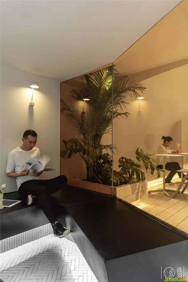這個區(qū)域旁邊我們用橙色的玻璃做了一個開放式的包間,保留了整體空間的呼吸感,也恰到好處的營造了區(qū)隔感。