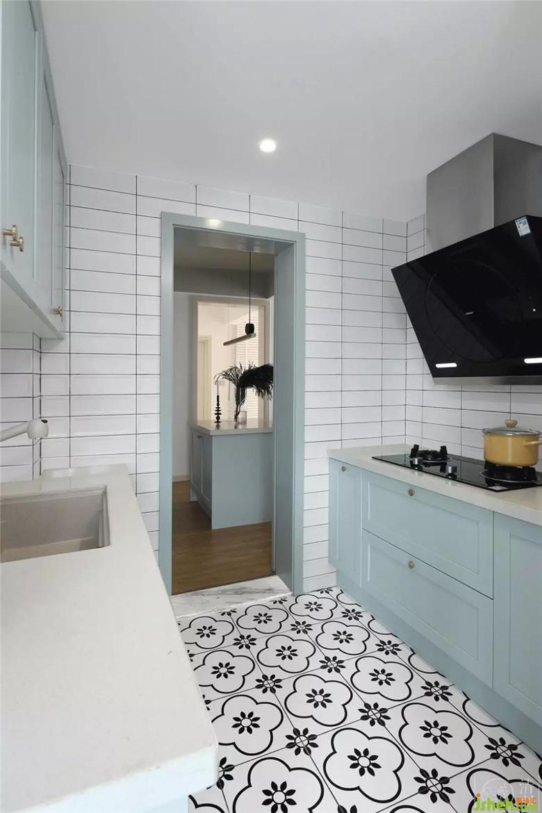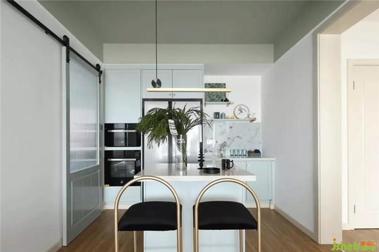 西廚區(qū)是穗穗一直想要的,在這里可以吃吃早餐,喝喝咖啡,做一份自己喜歡的晚餐。我們還在西廚區(qū)的頂面做了拼色,這樣和客廳的拼色做了一個呼應(yīng),讓整個空間有了呼應(yīng),更加統(tǒng)一和諧。