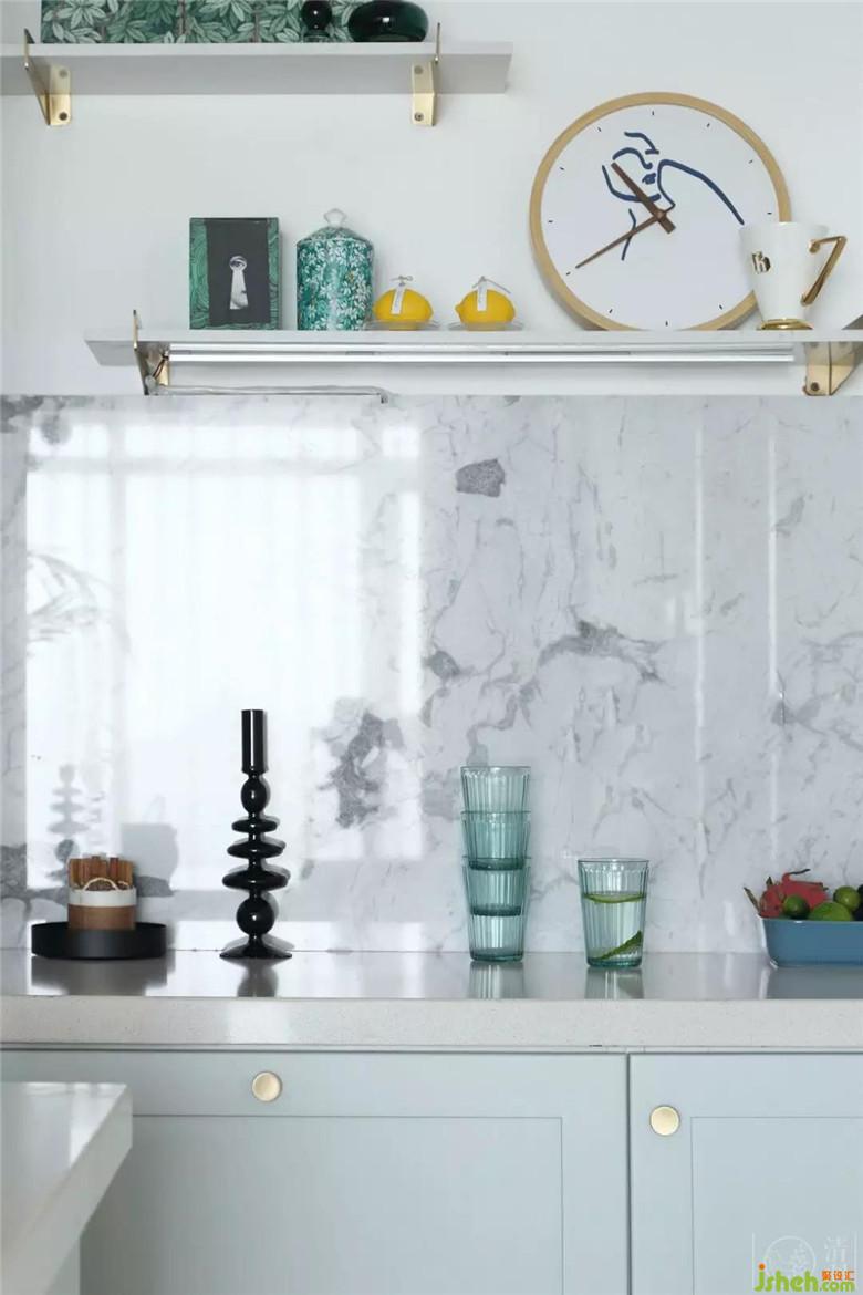 取消了繁冗的擋水,使用了整面大理石上墻,讓空間的細(xì)節(jié)變得更精致。