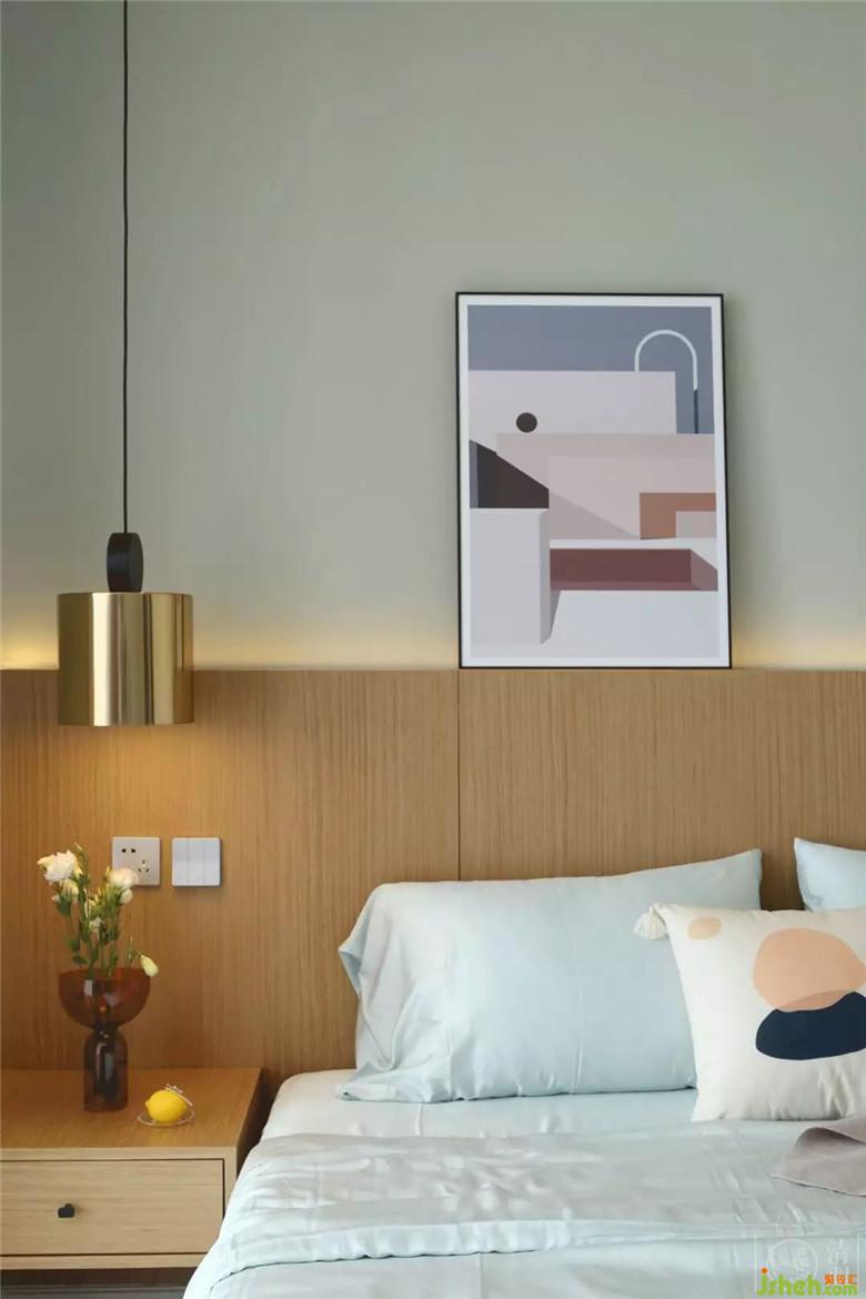無主燈設(shè)計,我們增加了線型燈和床頭裝飾燈,讓光源變得更加立體。