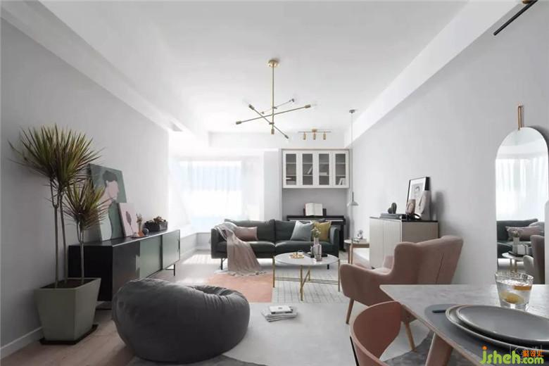 房子的整體采光都很好,我們也盡量的保留大部分的格局不變,讓自然光線可以撒滿整個屋子。因為廚房的格局與采光較弱,所以改動較大,廚房改為開放式的布局,增加吧臺與收納的空間。生活陽臺則從衛(wèi)生間通過,這樣廚房的空間也通透明亮起來。而在色彩上,我們也是采用大面積的灰度色彩,搭配低飽和度色調(diào)的的家具,讓整個房間通透而雅致,再用一些明亮顏色的配飾點綴其中,讓空間充滿趣味。