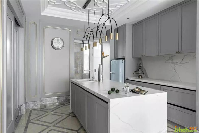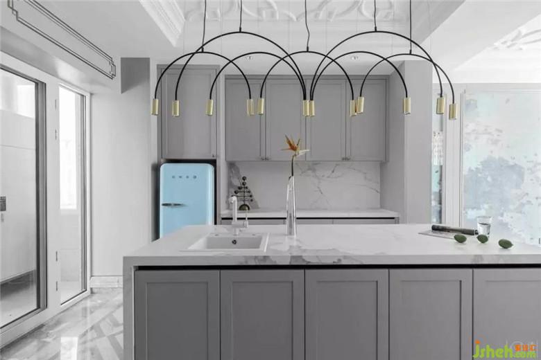 廚房是每一個(gè)家庭,最有煙火氣的地方,換句話說它也是最可能會(huì)打破高級(jí)感的地方。那么,臺(tái)面材質(zhì)、易打理程度、色彩的選擇搭配,空間動(dòng)線、燈光的照明重點(diǎn)、收納空間的規(guī)劃就顯得非常重要。