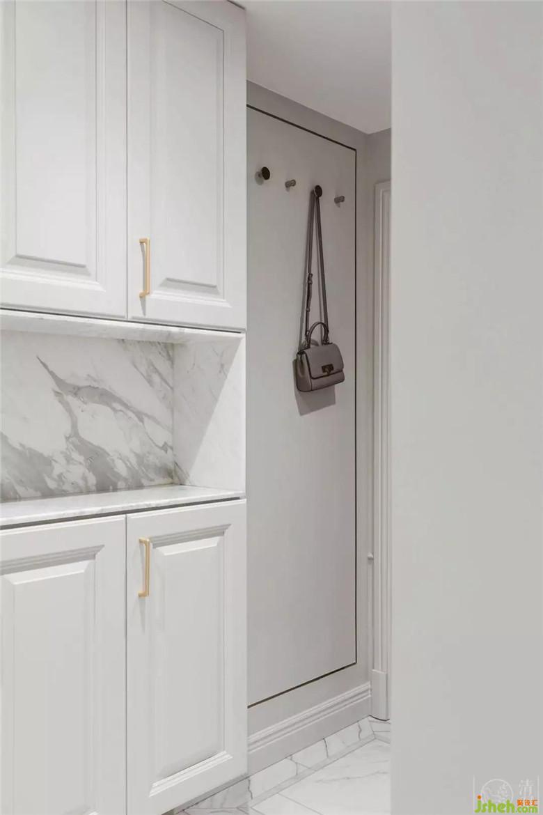 入戶在擁有超強(qiáng)收納鞋柜的同時(shí),和電視墻一樣都植入了石材盒子作為分割,讓普通的鞋柜不僅僅只擁有收納的功能,還承載了更多展示的作用。