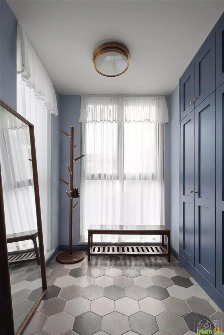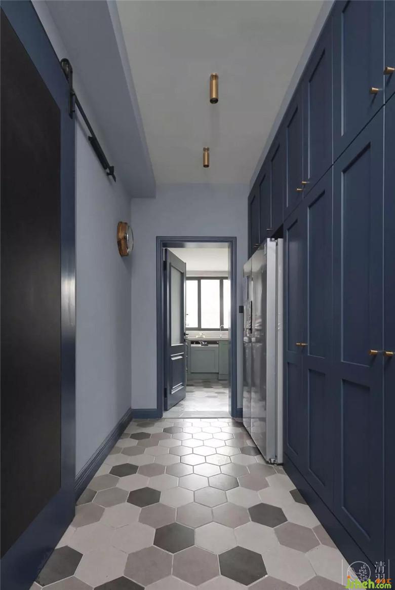 用灰藍作為這套房子的主色調,是因為我們想為S一家?guī)硎婢彾鴥?yōu)雅的氛圍,就像港灣中平靜的海面。任憑我們走多遠, 揚帆歸來,可以放下疲憊,悠然的??吭诎哆叀?