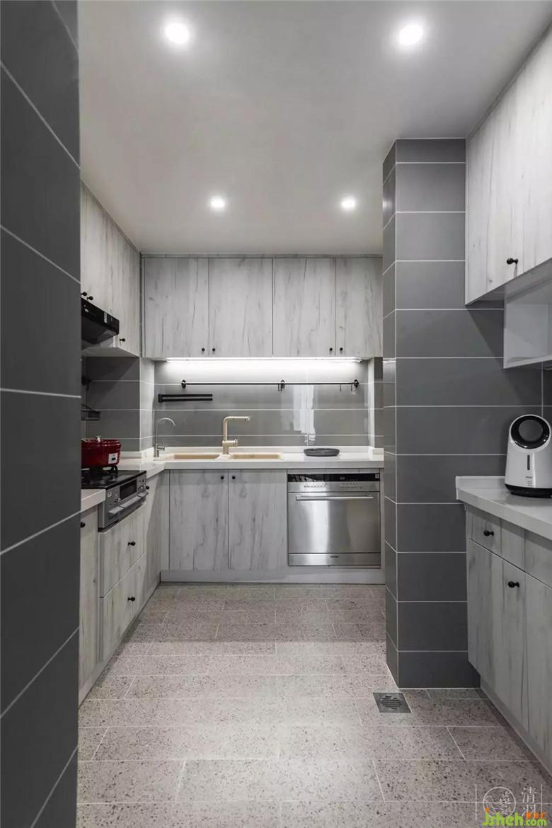 原始戶型的廚房空間相對局促,我們通過戶型優(yōu)化擴充出來的空間增加了櫥柜的長度,讓廚房的使用更加的方便。