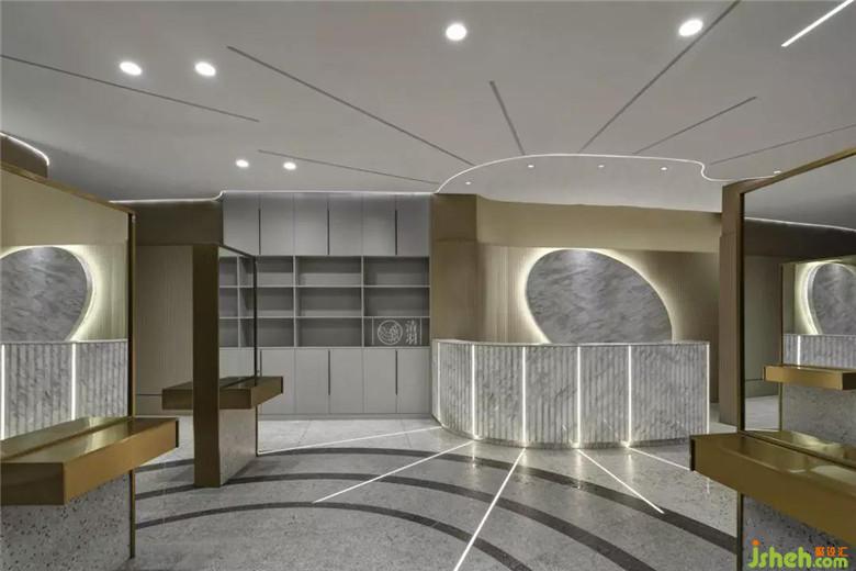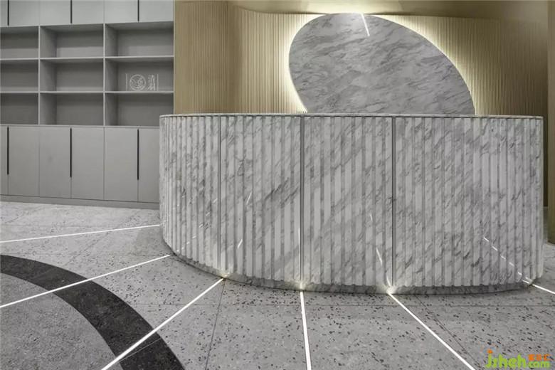 吧臺背景是一個“繭”的造型,寓意破繭而出,迎來新生,和美容中心“拋去昨日舊我,打造全新真我”的宗旨相契合。
