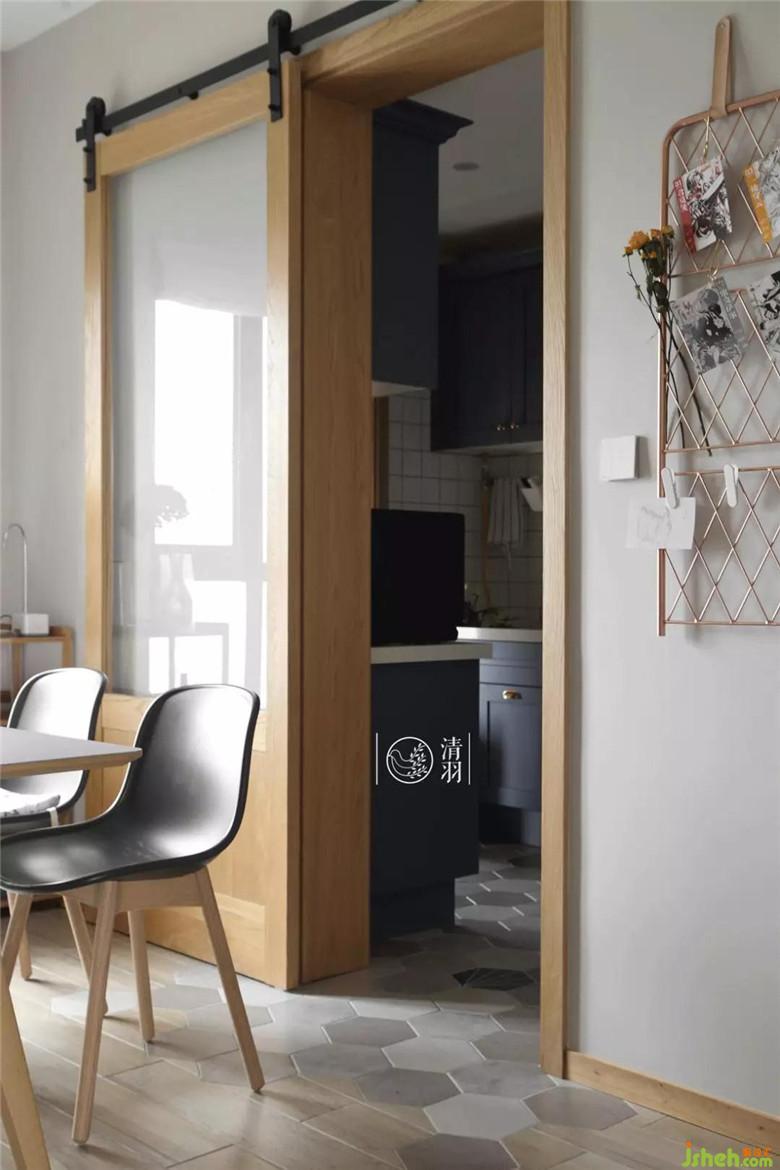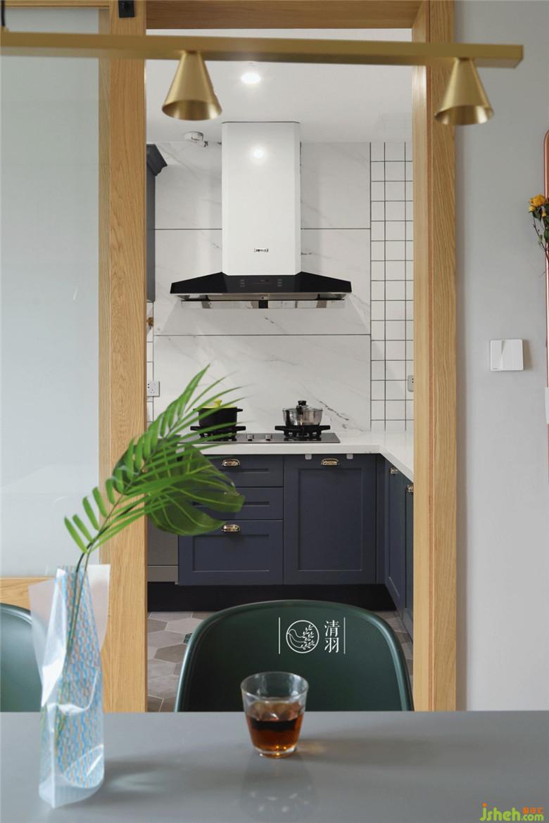 白色瓷磚搭配定制的深灰藍(lán)櫥柜,讓廚房的整個空間明亮又有質(zhì)感。