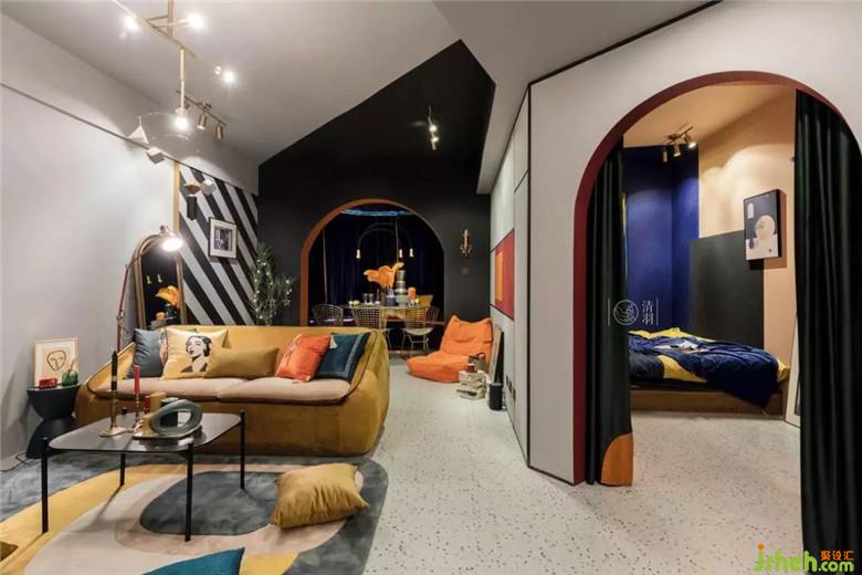 雪妹妹一家都是川劇藝術(shù)家,這一次我們沒有選擇延續(xù)之前他們家《安靜之?!返娘L(fēng)格,而是選擇了更契合她職業(yè)的一種氛圍——濃墨重彩。我們以川劇臉譜油彩為靈感,結(jié)合當(dāng)下流行色和幾何元素,加上類似舞臺燈光效果的照明方式,在這個老房子里打造出一個全新的舞臺。