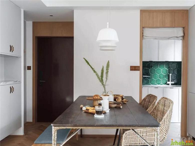 進(jìn)門的右側(cè)是餐廳,左側(cè)的墻面如果僅僅用作裝飾過于浪費(fèi),我們用白色到頂柜體做了收納空間,鞋帽包服均可囊括其中,清爽的視覺效果也能減少入戶相對(duì)狹小空間的壓迫感。