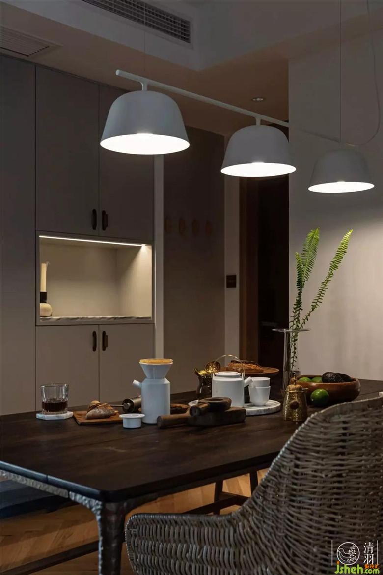 值得一提的是,盡管客廳我們沒有加入主燈,餐廳卻特別選用了來自丹麥品牌Muuto Ambit的懸掛式餐廳氛圍燈。因為我們以為,大面積投射到食物上的暖光,如同一味催化劑,讓圍坐餐桌的家人們不自覺的放慢語速,放下手機,專注于食物也專注于分享、傾聽彼此的一天。
