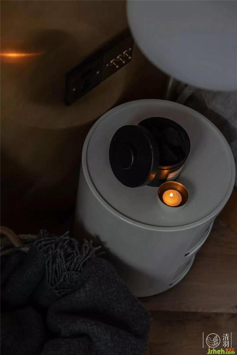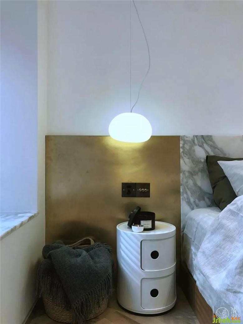 兩盞床頭閱讀燈特意選了不一樣的款式,左側(cè)的空間相對開闊,我們選用了丹麥MUUTO FLUID的云朵吊燈,富有自然美的它能給空間帶來輕盈感。