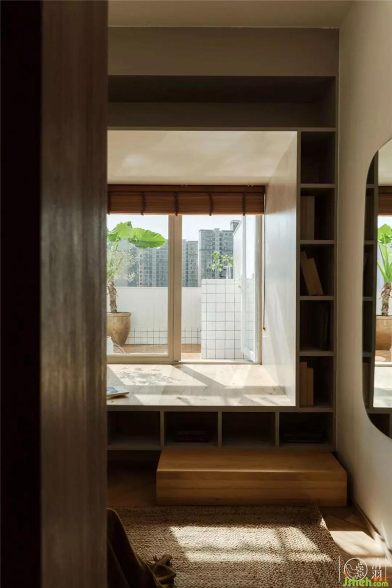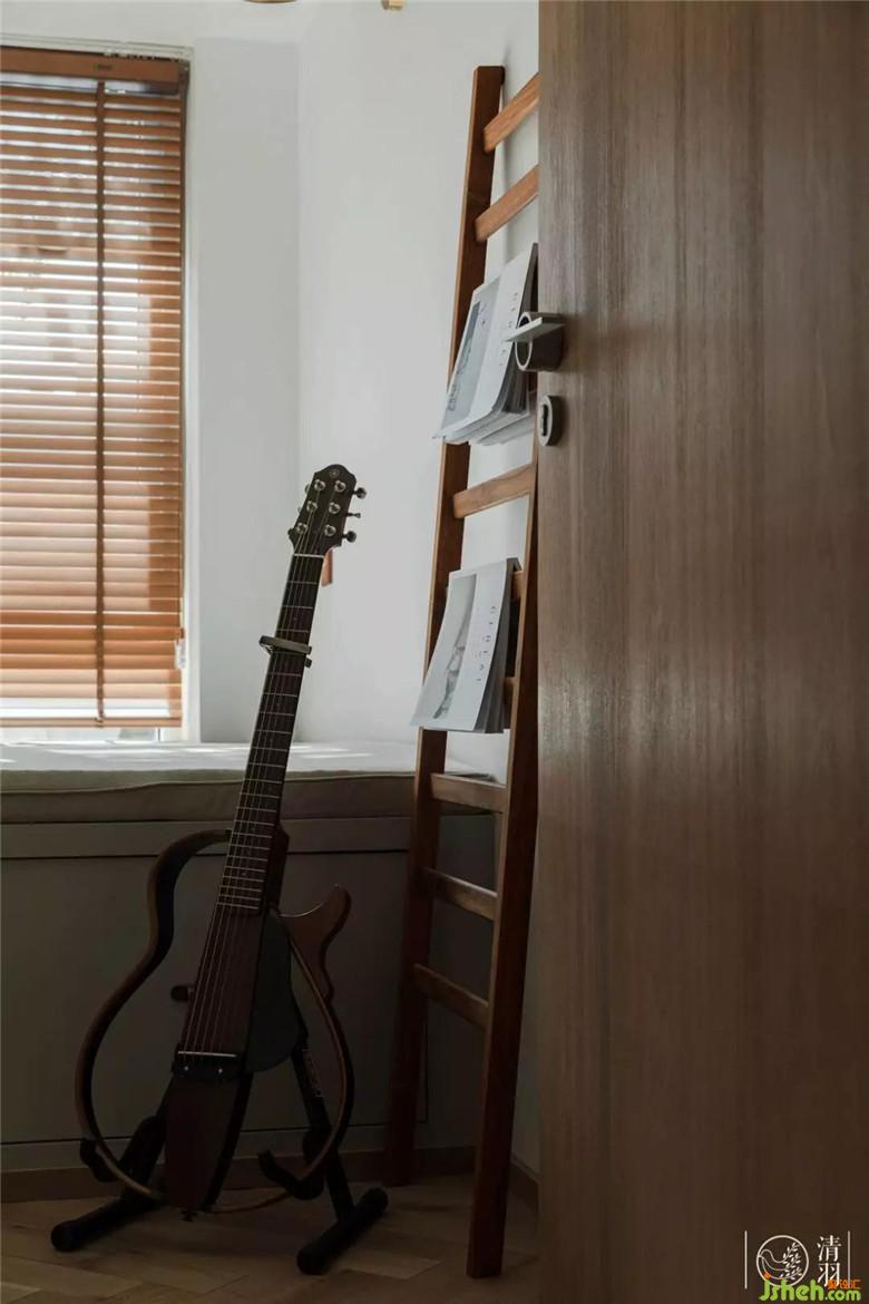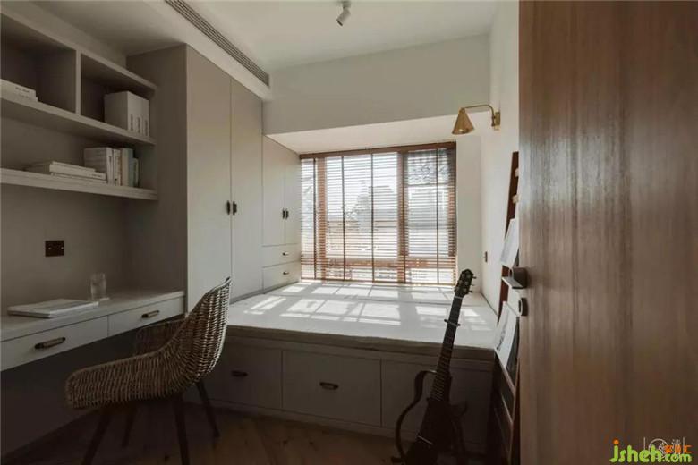 次臥在小朋友長大之前,它更多的功能可能就在于偶爾充當(dāng)客房,偶爾充當(dāng)辦公空間,偶爾充當(dāng)儲藏間,于是書架、環(huán)繞式收納柜、箱式帶收納功能的榻榻米一應(yīng)滿足所有需求。