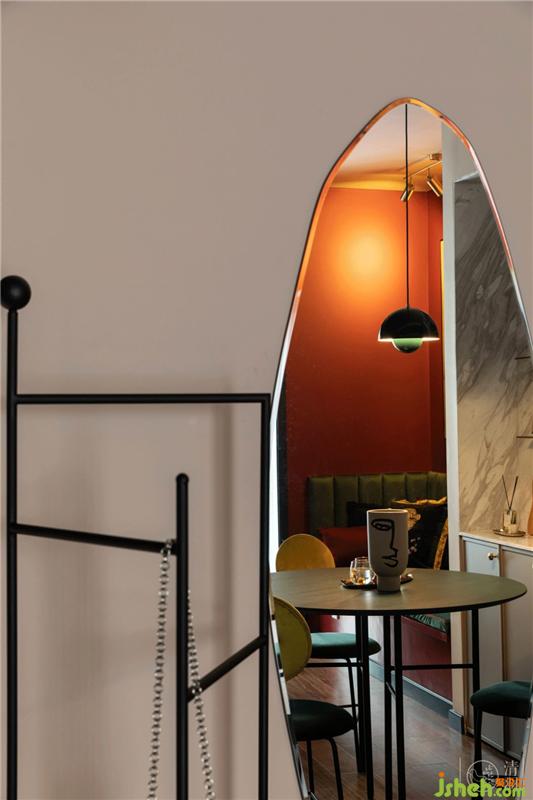 走廊墻面的異形穿衣鏡極具抽象美感,和人臉花瓶,羅斯科的畫作,很對味。