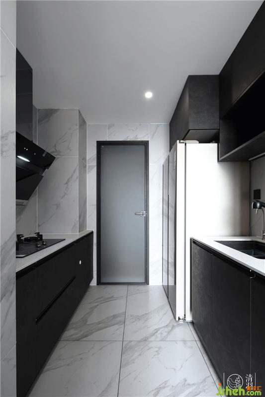 從客廳延伸到餐廳,整體布局呈現(xiàn)一字型,色調(diào)沿用客廳的淺灰色調(diào)為主,局部的暖色作點綴,增加空間層次感。同時考慮到座椅的舒適度,采用不規(guī)則方形的卡座設(shè)計節(jié)約了空間,在卡座下方放腳處增加一個斜度,提升用餐的體驗感。室內(nèi)設(shè)計師