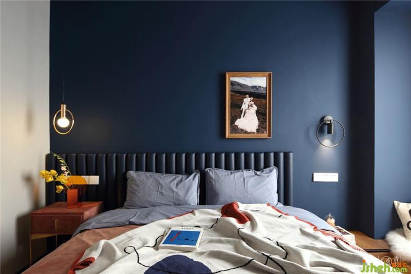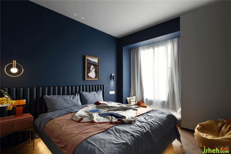 臥室是溫馨浪漫的,深湖藍(lán)色除了冷靜之外,還伴有浪漫之意。用深湖藍(lán)色配上燈光的暖、地板的黃、床頭柜的棕,窗紗的白等跳色,冷暖相交將整個空間變得浪漫而溫馨。室內(nèi)設(shè)計師
