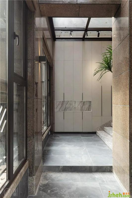 由入口進來有一條筆直的通道,穿過它,便能進入到室內(nèi)。利用入戶門前的空間做了一組儲物柜,方便有序的存放一些進出常用的鞋帽衣物等。