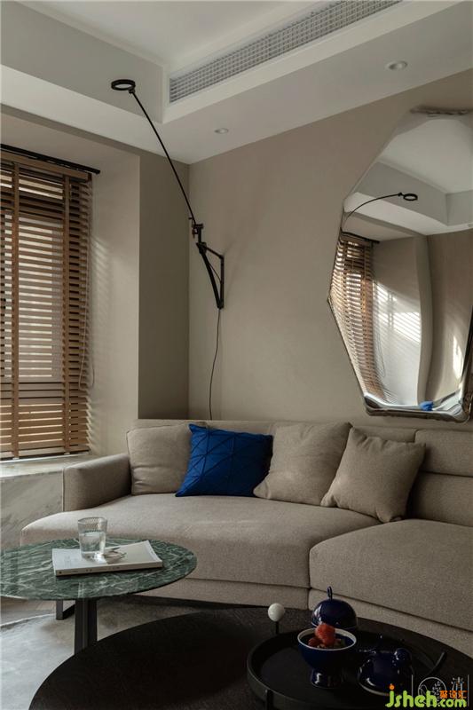 基調(diào)之上,我們加入了頗具當(dāng)代藝術(shù)特色的波蘭Zieta幾何異形鏡面藝術(shù)裝置、Masion Dada克萊因藍(lán)雕像裝飾、名為“彼岸”的CAMERICH銳馳小尺度沙發(fā),以在單調(diào)的點(diǎn)線面空間里制造出靈動(dòng)感。