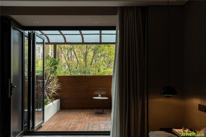 得益于一層入戶處上方的空間,臥室有了一塊大陽臺。