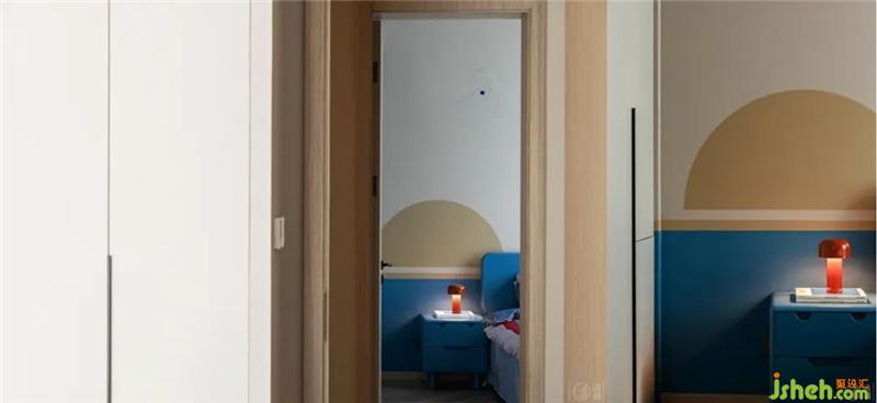 同樣在墻上做了一點(diǎn)小文章。一塊暖黃色的半圓形,不知道小朋友會(huì)覺(jué)得它是蛋黃、餅干、升到半空中的太陽(yáng)還是正要下落的月亮呢?