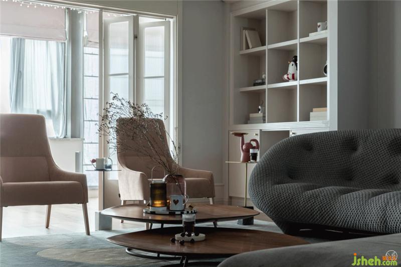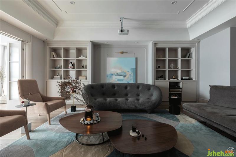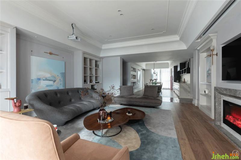 客廳的全套家具都來(lái)自Ligne Roset寫(xiě)意空間,灰色網(wǎng)面布沙發(fā)是Ploum系列,極具曲線感,就像海浪,為平靜的海洋增添一絲韻律十足的趣味感。