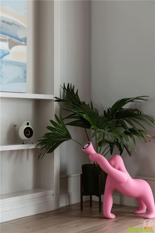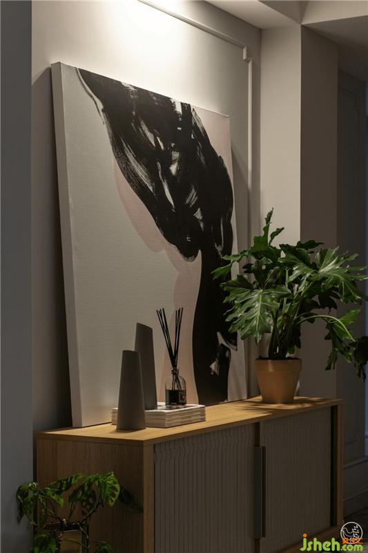抽象水墨般的油畫(huà),春羽,精油香薰,粗糲質(zhì)感的陶制花瓶,等了大半年才買(mǎi)到手的Normann玄關(guān)柜,特別的頂面光線……制造出仿佛水邊夏夜般的閑適感。動(dòng)靜相宜,濃淡搭配,反而更顯內(nèi)涵。