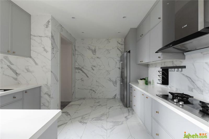 潔凈溫柔是它的基調(diào),淡雅的大理石紋如同湛藍(lán)天空中絲絲飄蕩的云,淺灰色的櫥柜除了得心應(yīng)手地滿足了收納,還散發(fā)著最素凈的質(zhì)感。