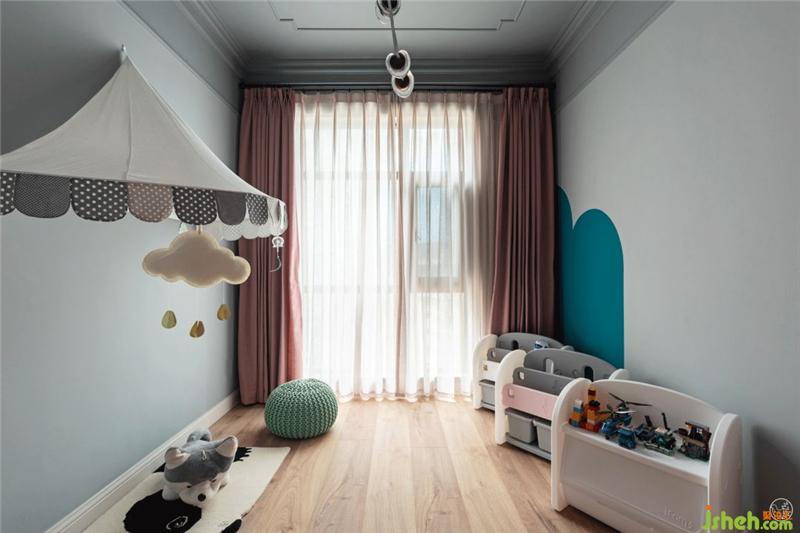 另一個(gè)粉可愛的房間現(xiàn)在是兒童游戲室的狀態(tài),其實(shí)是夫妻倆很想要一個(gè)女兒,這也是四川家庭的特色,所以我們提前做了女兒房的設(shè)計(jì)規(guī)劃,希望寶寶全家心想事成。