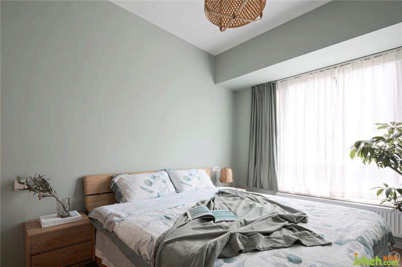 在父母房中,考慮父母年紀較大,墻面、窗簾、被套我們都以綠豆灰為基調(diào),搭配著窗紗和床藝用品的棉麻白、床頭柜的原木色,營造出舒適、健康又賞心悅目、富有治愈氣息的休憩環(huán)境,更有益于睡眠。