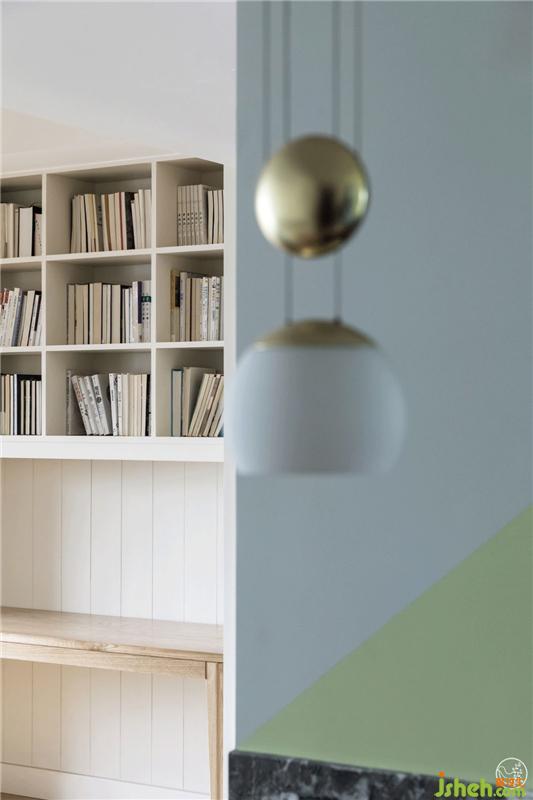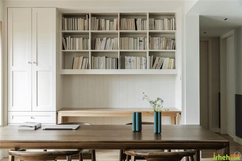 而另外的三分之一,擺放了一張大桌子,利用后面的墻體現(xiàn)場(chǎng)制作了半開放式置物柜,開放的地方整好用來安放她愛的書籍。
