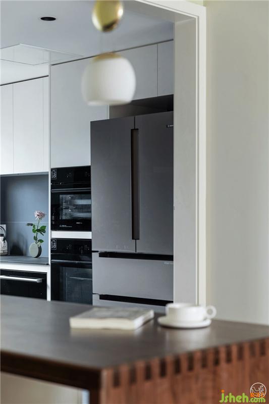 由吧臺(tái)作為連接點(diǎn)的廚房也算是開放式的。