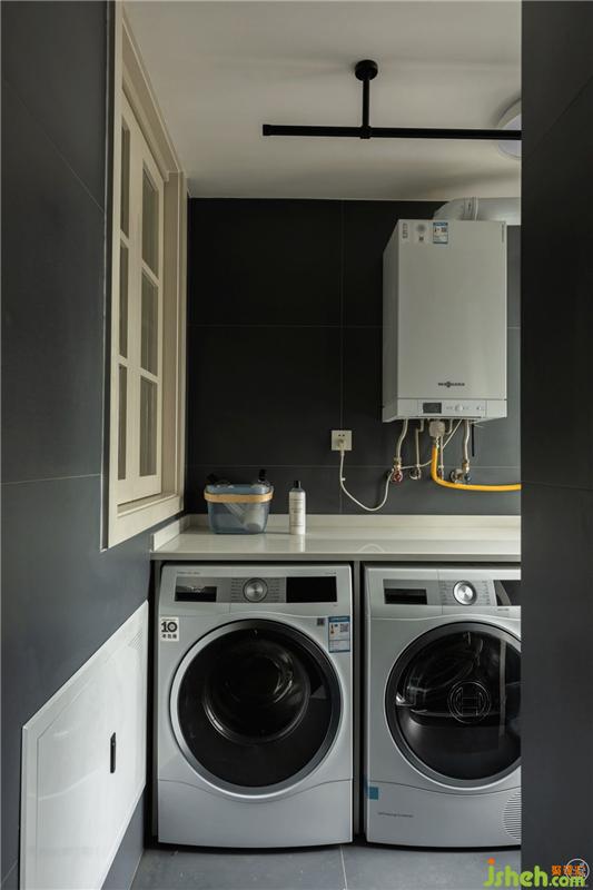 廚房外側(cè),也即是吧臺(tái)的窗戶外既是空間充足的生活陽臺(tái)。
