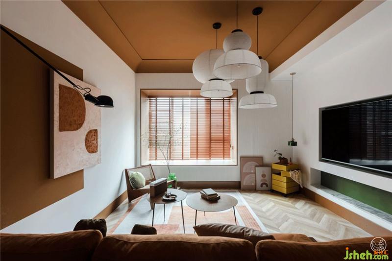 明快、元?dú)飧惺愕某壬尤胍欢ū壤淖厣?,忽然就沉穩(wěn)高級(jí)起來,對于口紅來說它反而變得沒那么“挑皮(膚色)”了,那么用在空間里會(huì)產(chǎn)什么樣的效應(yīng)呢?是的,你猜對了,我們又一次做了大膽且自信的嘗試!大膽到“不管不顧”地用它涂滿了客廳的整個(gè)頂面,自信到帥氣地“忽視”了雪兒對于這個(gè)大手筆的擔(dān)心。畢竟五年內(nèi)三次合作,這點(diǎn)心有靈犀還是在的。