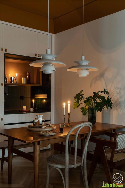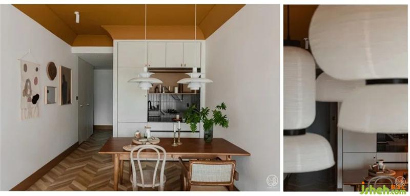 餐廳的物理位置在廚房與客廳中間,我們將廚房與它相接的墻體破開了一個(gè)窗口,讓看似融合在客廳里的它,以獨(dú)特的方式串起了整個(gè)空間。室內(nèi)設(shè)計(jì)師