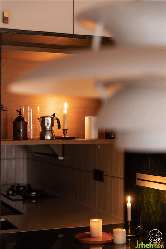 這樣的設(shè)置除了想要打破人們對空間的刻板印象,并以此增加廚房的采光,利用柜體隱藏冰箱加大了空間利用率;也期望借此給他們的生活增添一些可以交流的小情趣。