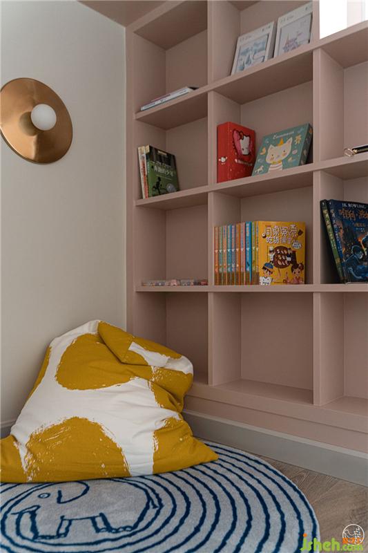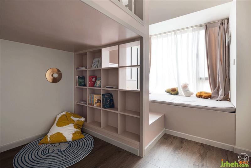 整個(gè)空間以藕粉色為主調(diào),搭配干凈明亮的奶油灰、趣味的圓形地毯,干凈而有活力。同時(shí)為了給孩子更多的活動(dòng)空間,我們設(shè)計(jì)了上床下空的結(jié)構(gòu),將床邊的樓梯與飄窗臺相連,留出下方的寬闊的活動(dòng)、游戲空間,書柜鏤空的設(shè)計(jì),將采光與實(shí)用性兼具,同時(shí)也滿足了小孩的休息娛樂的需求。旁邊寬大的飄窗偶爾還可以作為臥榻使用。